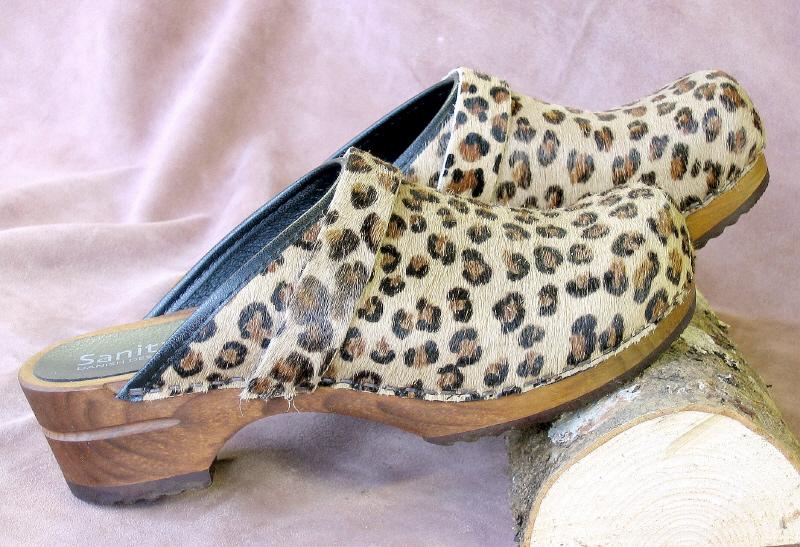 Sanita Clogs in auffälligem Leoparden-Look. Nur noch in Größe: 38.