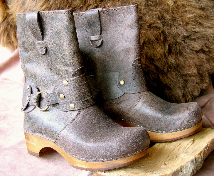 Trendiger brauner halbhoher Boot- Clog aus Rindsleder. Mit rutschhemmender Gummisohle. Nur noch in Größe 40 lieferbar.
