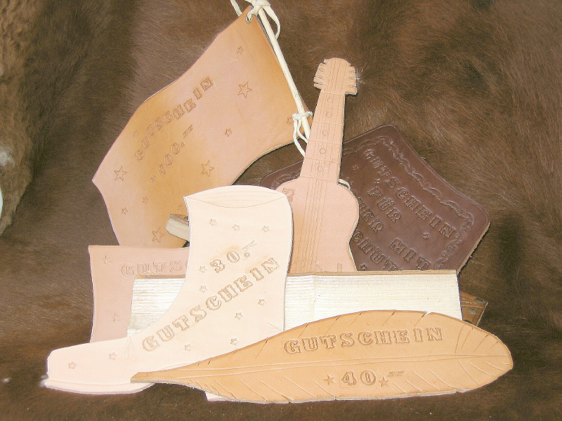Gutscheine mit Freude verschenken - Bei uns gar kein Problem. Wir fertigen Gutscheine mit persönlicher Note auf Leder. Bei Gutscheinen erheben wir keine Portogebühr. Teilen Sie uns Ihre Wünsche einfach telefonisch mit.