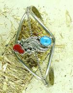 Armspange 36 mit einem Türkis und Koralle; ca. 3,5 cm in der Mitte, ca. 0,5 cm breit an den Enden, für schmales bis mittleres Handgelenk 62,00 EUR