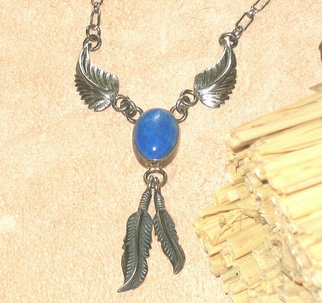 mit ovalem Lapislazuli, Anhänger ca. 4 cm breit und 7 cm lang. Gesamtlänge offen: 47 cm.