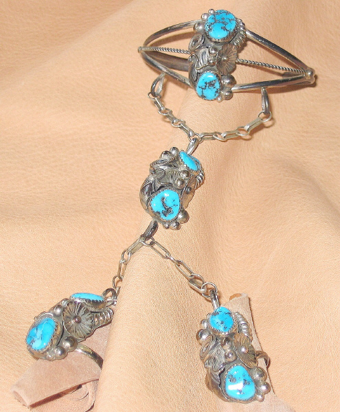 mit 8 Türkisen - für 2 Finger, für mittleres bis stärkeres Handgelenk, Ringgröße individuell verstellbar.