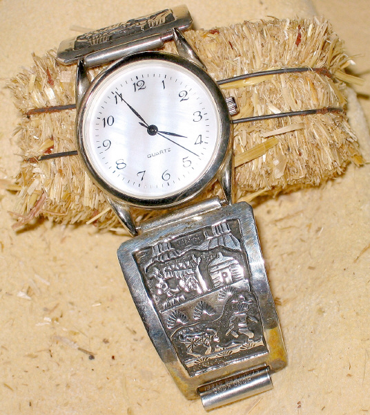 Durchmesser des Zifferblattes ca. 3 cm, für mittleres bis starkes Handgelenk. Armband dehnbar. Es können Armbandglieder je nach Größe eingesetzt werden.