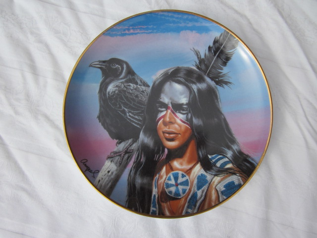 Porzellan Wandteller "Spirit of the black Crow" mit Echtheitszeugnis. Der Geist der schwarzen Krähe.