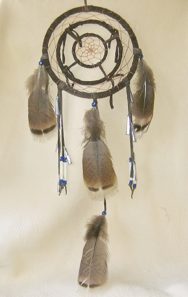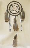 mit Federn, Glasperlen und Konen, die bei leichtem Wind einen angenehmen Klang erzeugen. Durchmesser ca. 16cm.