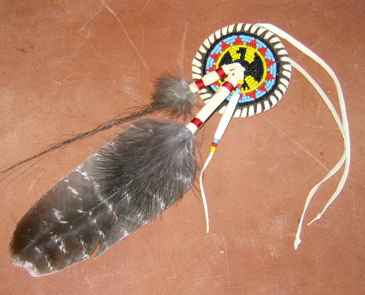 mit Lederband zum Einbinden, mit Glasperlen bestickt; Durchmesser: ca. 6,5 cm Länge: ca. 20 cm. Nur noch 4 Exemplare.