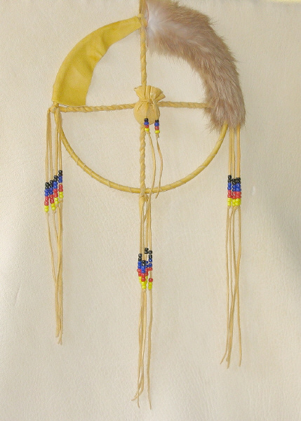 mit echtem Fell, Federn und kleinen Glasperlen besetzt, ca. 16 cm Durchmesser.