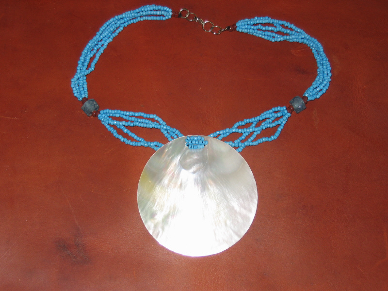 mit Perlen und Perlmutscheibe Durchmesser ca. 8 cm 28 cm lang