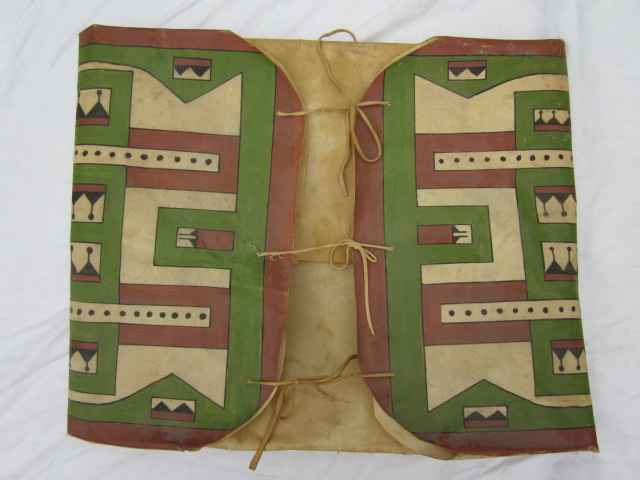 Parfleches aus Rohhaut, bemalt mit Pigmentfarben, ca. 50 cm x 60 cm.