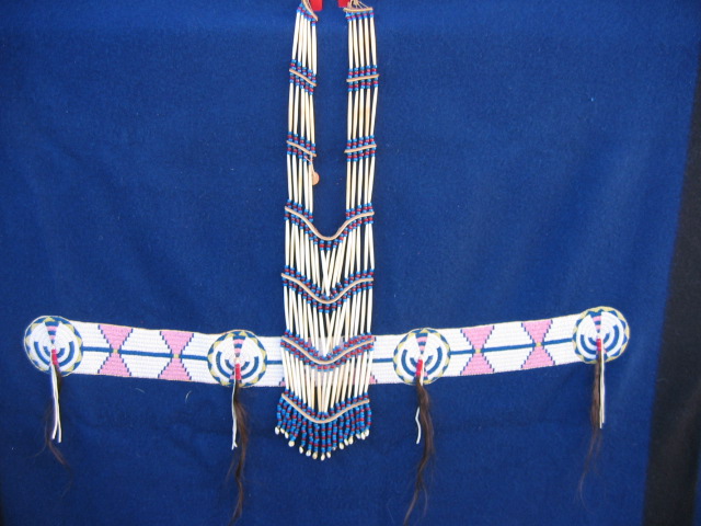 Crow Bead`s rot+blau transparent; Länge ca. 1 m, Hairpipes Länge a ca. 10 cm Ausstellungsstück nur