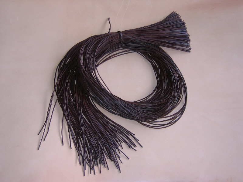 aus Ziegenleder; Farben: schwarz, braun und natur. ca. 1 mm stark und ca. 1 m lang, pro 10 Stück = 1 Lederriemen gratis