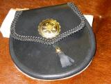 aus robustem Leder in schwarz, verziert mit einer Concha und Druckknopf-Verschluss. Größe: ca. 18 x 18 cm.