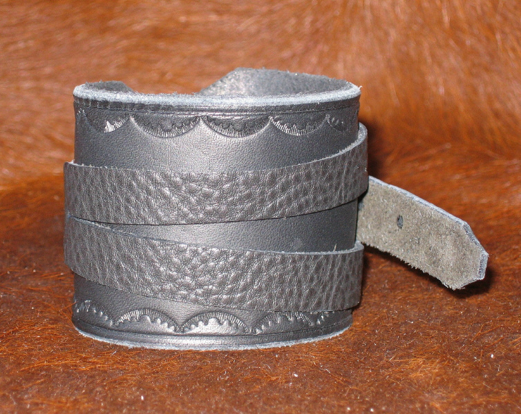 aus eigener Werkstatt. Kraftarmband. Bandbreite ca. 5 cm. Größenverstellbar von ca. 16 - 22 cm. Farbe: natur, braun oder schwarz.