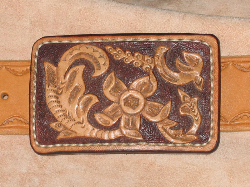 Lederbuckle handpunziert. Maße: 10,5 x 6,5 cm.