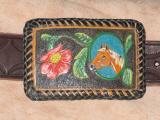 Lederbuckle handpunziert. Maße: 10,5 x 7 cm.