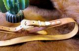 naturfarbig dunkel mit auffallender Verschlußtechnik und schöner Gürtelbeschnallung. Breite 3 cm.