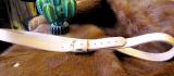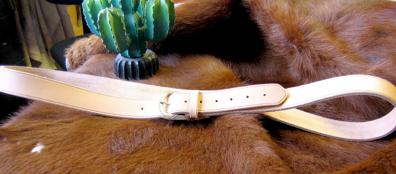 naturfarben mit gezogener Kante und silberfarbener Gürtelschnalle. Breite: 4 cm.