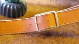 in old German Look ( rotbraun), hüftgeschnittener Gürtel - also ideal für hüftige Hosen, gezogener Kante und einfacher schöner Gürtelschnalle. Breite 3,8 cm.