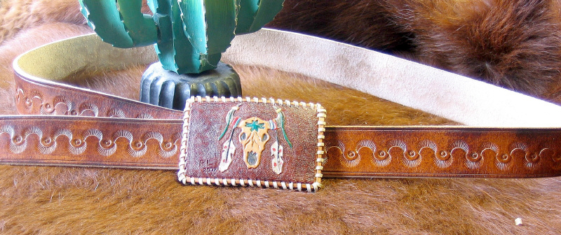 natur eingefärbt im Antik- Leder- Look, punziert mit Muschelmuster. Abgebildetes Buckle ist nicht im Preis inbegriffen. Breite 4 cm.