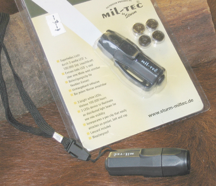 3 LED, Kunststoff, 4x AG-13 Cell Batterien (Inclusive), bringt superhelles Licht, Leuchtkraft 100.000 Std., sichtbar über 1 Meile, Befestigungsclip für flexiblen Einsatz, Umhängeband inclusive, bei jedem Wetter einsetzbar.
