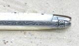 Mechanik und Verarbeitung für höchste Ansprüche. Die Schmiede "Forge de Laguiole" führt jeden Arbeitsschritt in eigener Werkstatt aus. Laguiole 1211 IN. Griffschalen: Knochen (Bein). Klinge: ca. 9,5cm poliert. Grifflänge: ca. 11cm.
