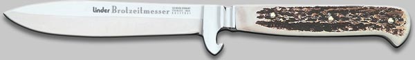 Brotzeitmesser, mit Kapselheber; 440 A Stahl, rostfrei, mit echten Hirschhornschalen. Klingenlänge 10 cm
