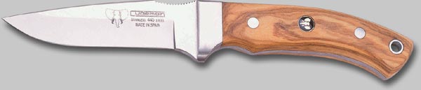 Jagdmesser mit 440A Stahl Klinge, rostfrei, Griffschalen aus Olivenholz. Klingenlänge 10 cm mit Lederscheide
