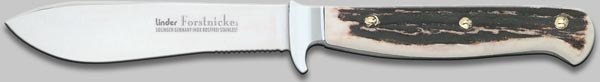 Forstnicker; 440A Stahl, rostfrei, mit echten Hirschhornschalen. Klingenlänge 12 cm