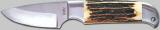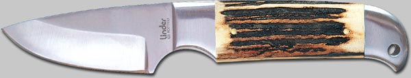 Jagdmesser mit Griffschalen aus echtem Hirschhorn. 420 Stahl Klinge, rostfrei. Klingenlänge 10 cm mit Sicherheitsscheide