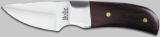 Kleines Jagdmesser mit Holz-Griffschalen. 420 Stahl Klinge, rostfrei. Klingenlänge 5 cm mit Lederscheide