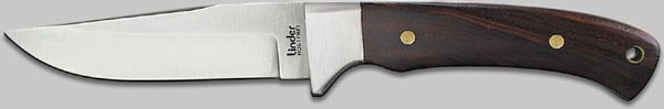 Kleines Jagdmesser mit Holz-Griffschalen. 420 Stahl Klinge, rostfrei. Klingenlänge 10 cm mit Lederscheide