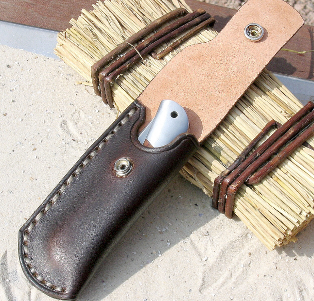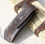 braun punziert, für Klappmesser bis 13 cm Klinge. Maße geschlossen BxHxT: ca.5,5 x 15,5 x 3,5 cm.