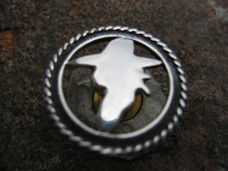 Authentische Reproduktion von alten Conchas aus massiv Sterlingsilber; mit Schraubverschluss "Motiv Cowboy" ca. 2,5 cm Durchmesser