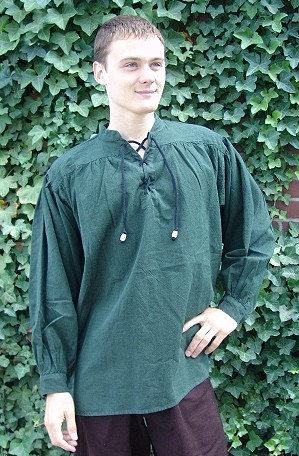 Weit geschnittenes, handgewebtes Stehkragen-Schnürhemd, meliert, exzellente, schwere Qualität, maschinenwäsche. 100% Baumwolle. Farben: Grün, Dunkelblau, Rot und Schwarz. Größen: S - 3XL.