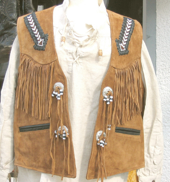 mit 2 Innentaschen, 1 davon mit Reißverschluss und Satin-Innenfutter, Rückenverzierung durch V-förmige Fransen. Größen: XXL, XXXL.